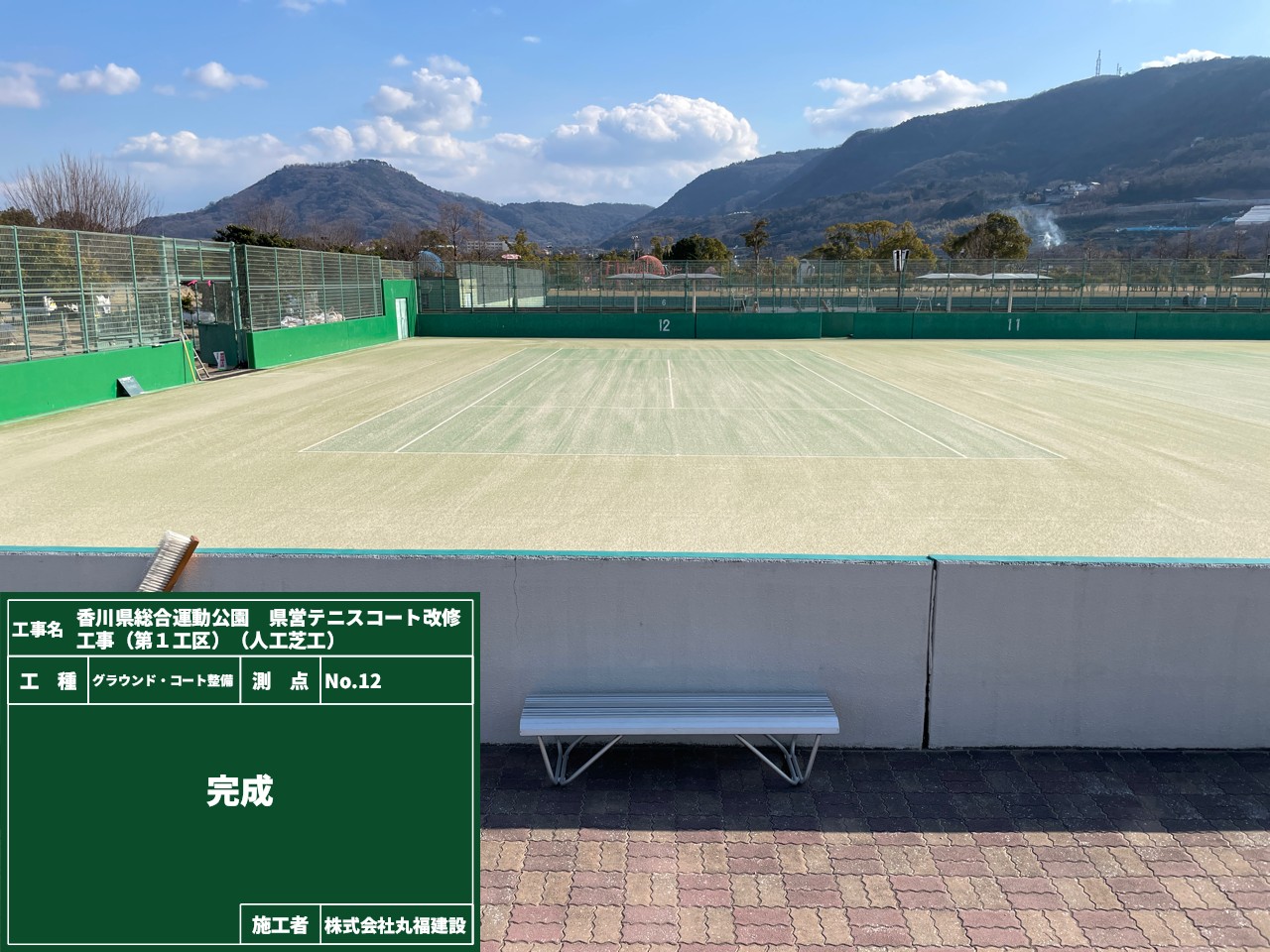 【工事名】香川県総合運動公園 県営テニスコート改修工事(第1工区)(人工芝工) 【工事場所】高松市生島町 【工事内容】人工芝テニスコート改修 |